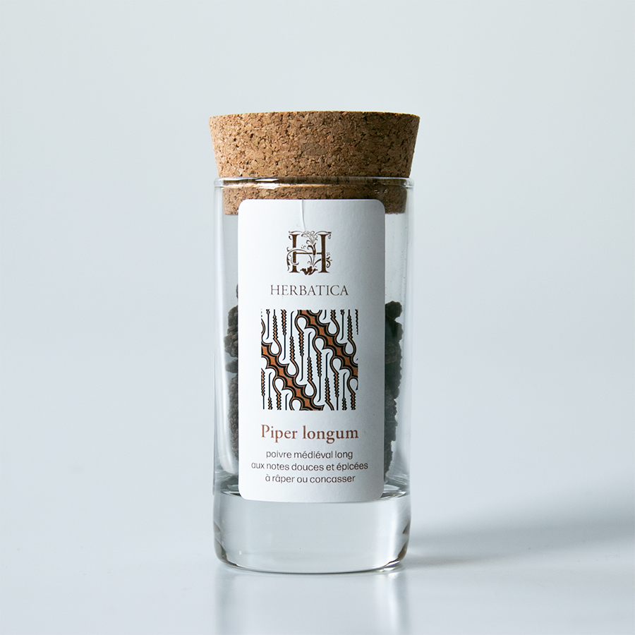 Poivre long médiéval à râper ou concasser. Notes douces et épicées, pour viandes (agneau, canard, gibier), légumes, marinades et desserts au chocolat, fruits rouges ou crèmes.